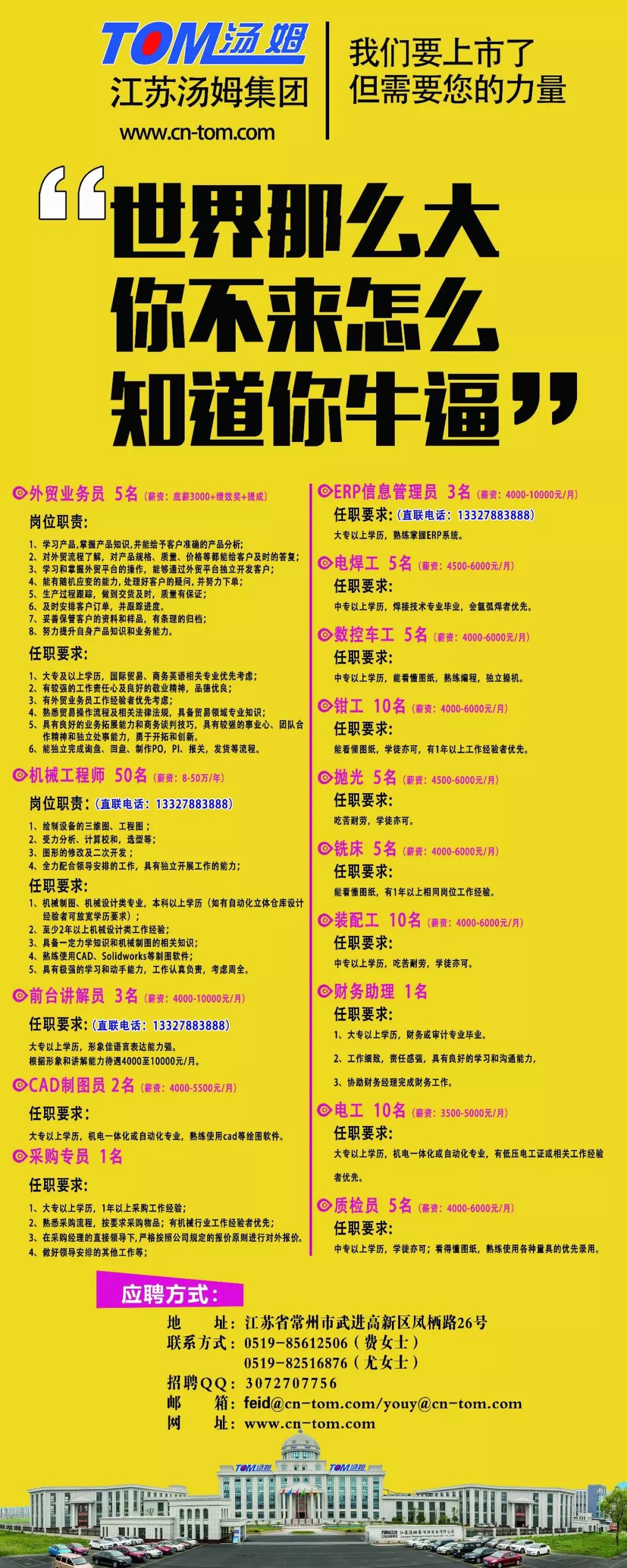 【誠聘】江蘇湯姆集團誠聘英才,只要你夠出色,我們就會(huì )給你最好的平臺!