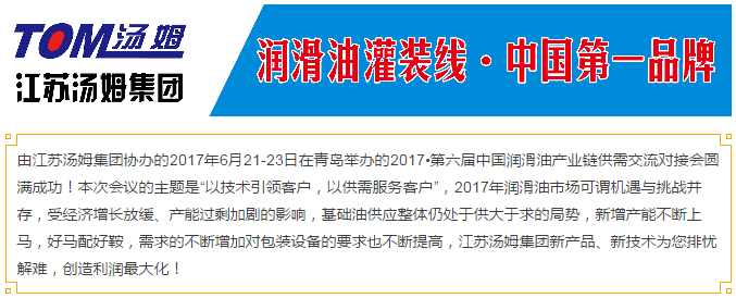 【會(huì )議】熱烈祝賀由江蘇湯姆集團協(xié)辦的2017?第六屆中國潤滑油產(chǎn)業(yè)鏈供需交流對接會(huì )圓滿(mǎn)成功!