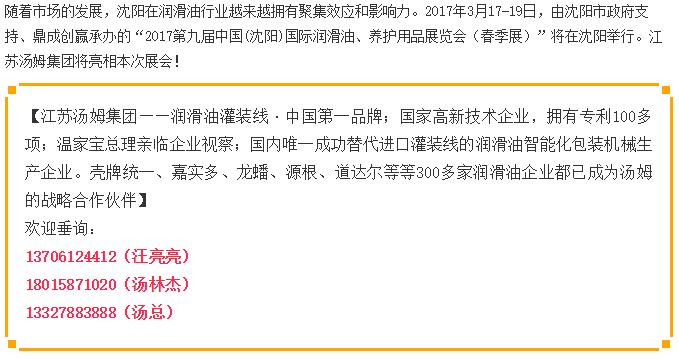 【展會(huì )信息】江蘇湯姆集團亮相沈陽(yáng)國際潤滑油展,歡迎新老客戶(hù)光臨!