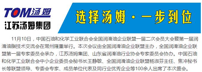 全國潤滑油企業(yè)聯(lián)盟一屆二次會(huì )員大會(huì )暨第一屆潤滑油脂技術(shù)交流會(huì )在江蘇湯姆集團順利召開(kāi)