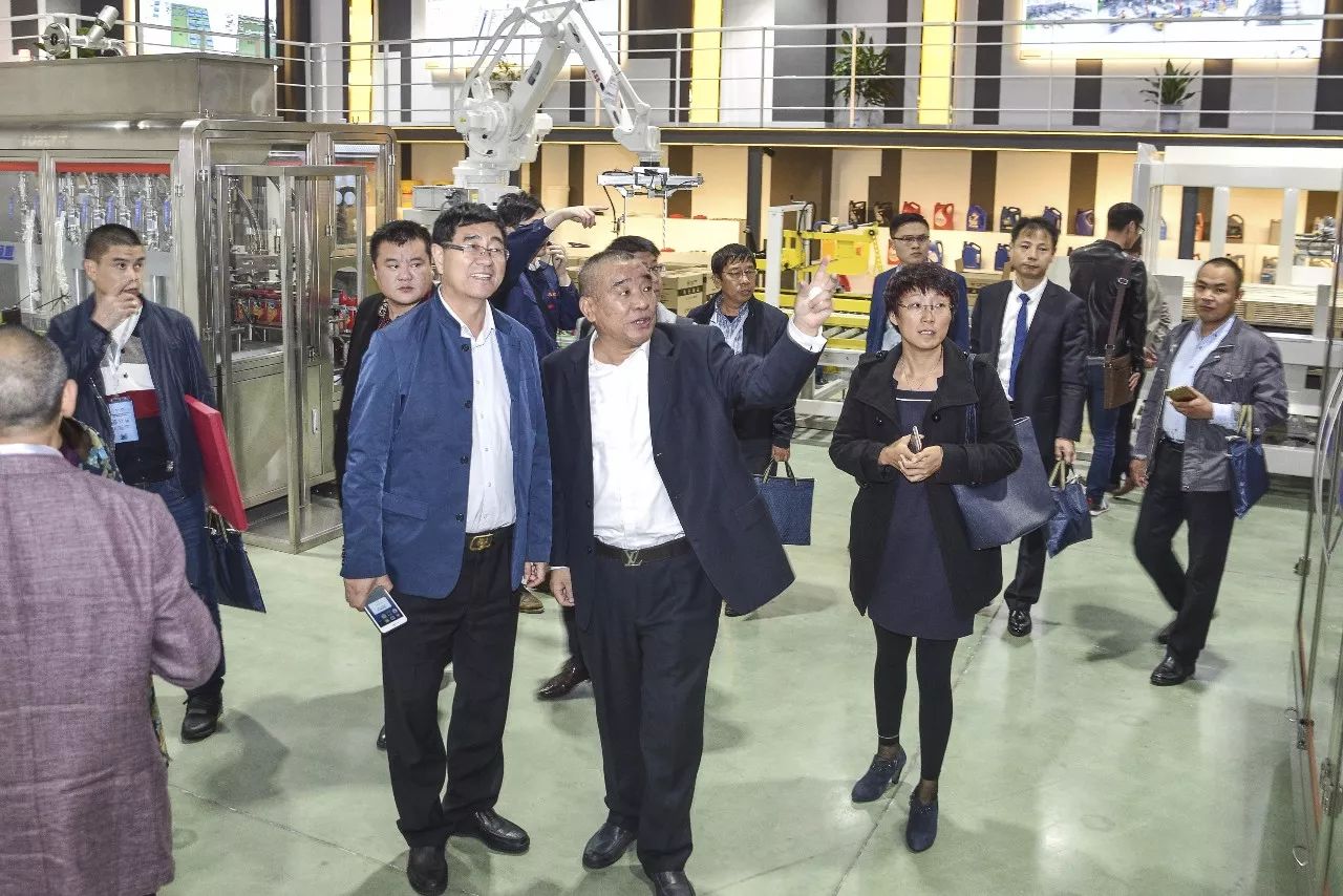 (參會(huì )嘉賓參觀(guān)湯姆集團灌裝線(xiàn)生產(chǎn)自動(dòng)化立體倉庫存儲現場(chǎng))