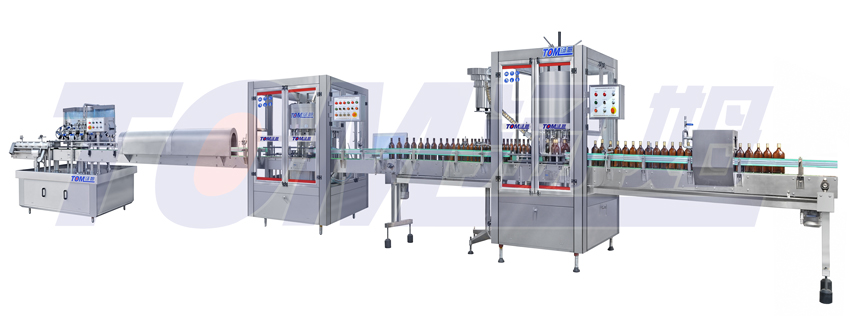 本流水線(xiàn)適用普通500ml 回收瓶的白酒、黃酒、醬油、醋的灌裝、壓(旋、扎)蓋、貼標,對方瓶、扁瓶都適用,特殊異形瓶可定做。