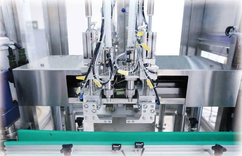 1、伺服驅動(dòng)跟蹤定位灌裝,灌裝走瓶同步進(jìn)行,速度快,精度高。